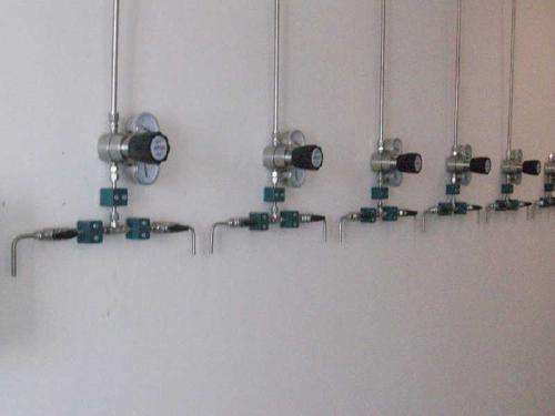 在某些情況下,當(dāng)?shù)叵酪?guī)范建議甚至要求將主要的氣體源如鋼瓶、杜瓦瓶和液體儲槽放置在工作區(qū)外的指定區(qū)域,然后將氣體通過管道系統(tǒng)輸送至廠房內(nèi),并可通過安裝在工作臺上的使用點二級減壓器方便地調(diào)節(jié)壓力和流量。